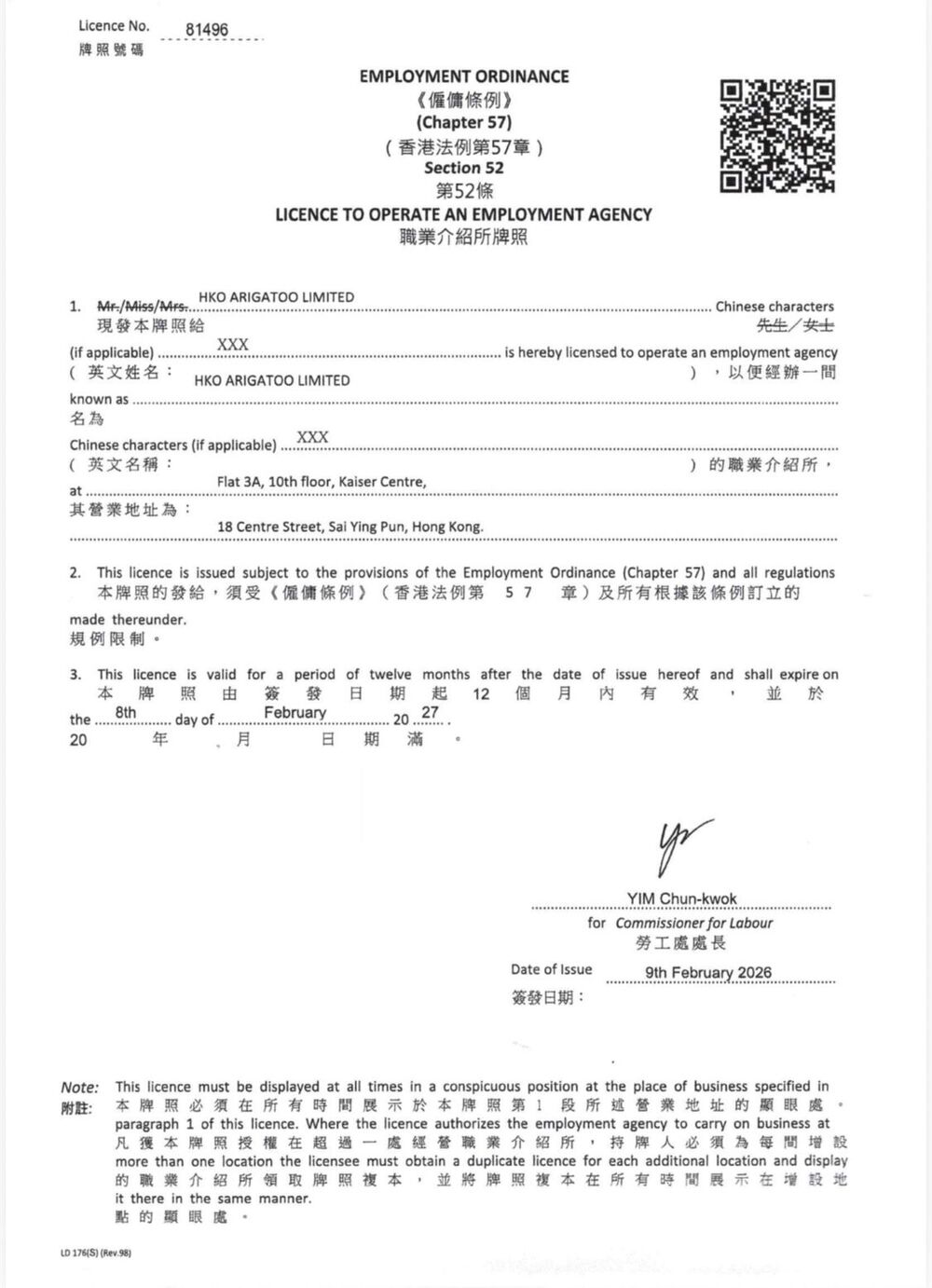 This is HKO Arigatoo Limited