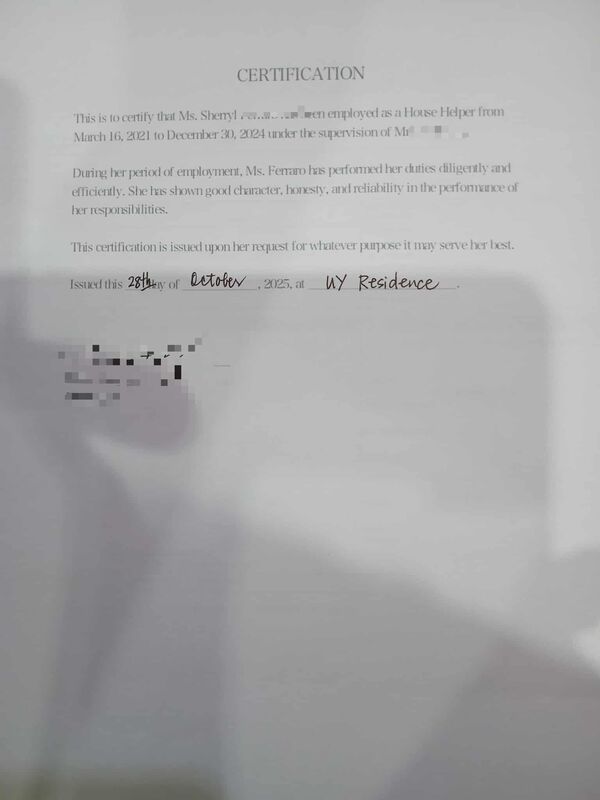 I have more than 4 years of experience as a general household helper were I am doing laundry, ironing, cooking, assisting my employer whenever they needed my assistance, gardening, carwash, pet care, inventory for groceries needed, organizing, folding clean clothes, moping and sanitizing surfaces.